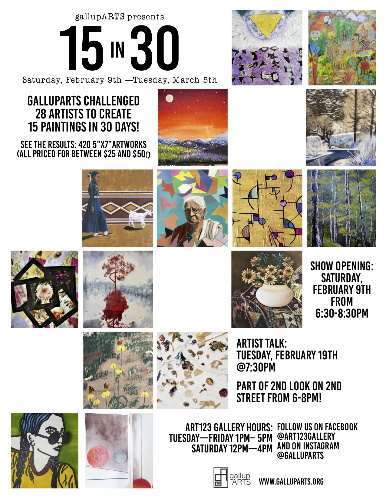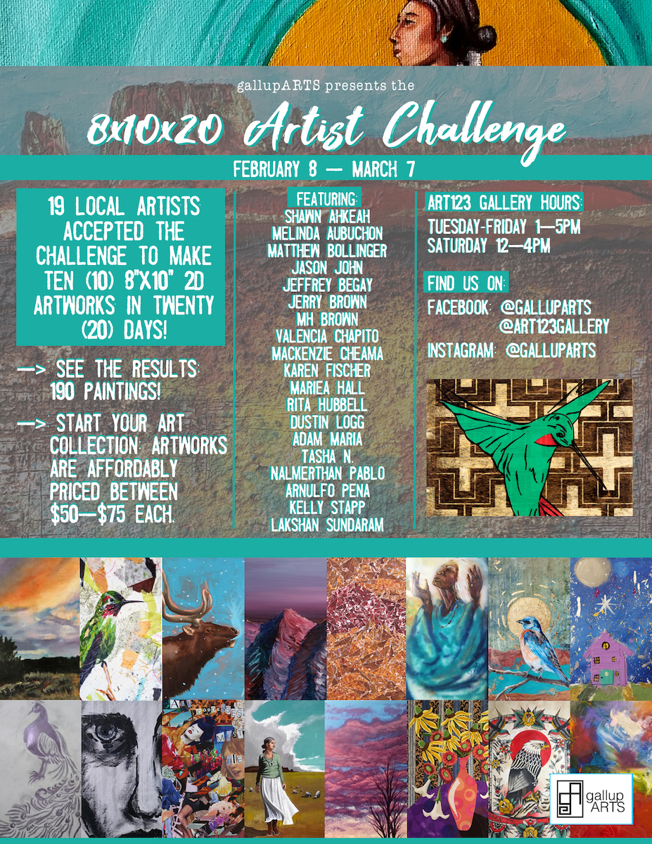 Each winter, gallupARTS sponsors an “Artist Challenge” to encourage local artists to push their practices and build community by creating a given number of works of a specific dimension within a certain timeframe.